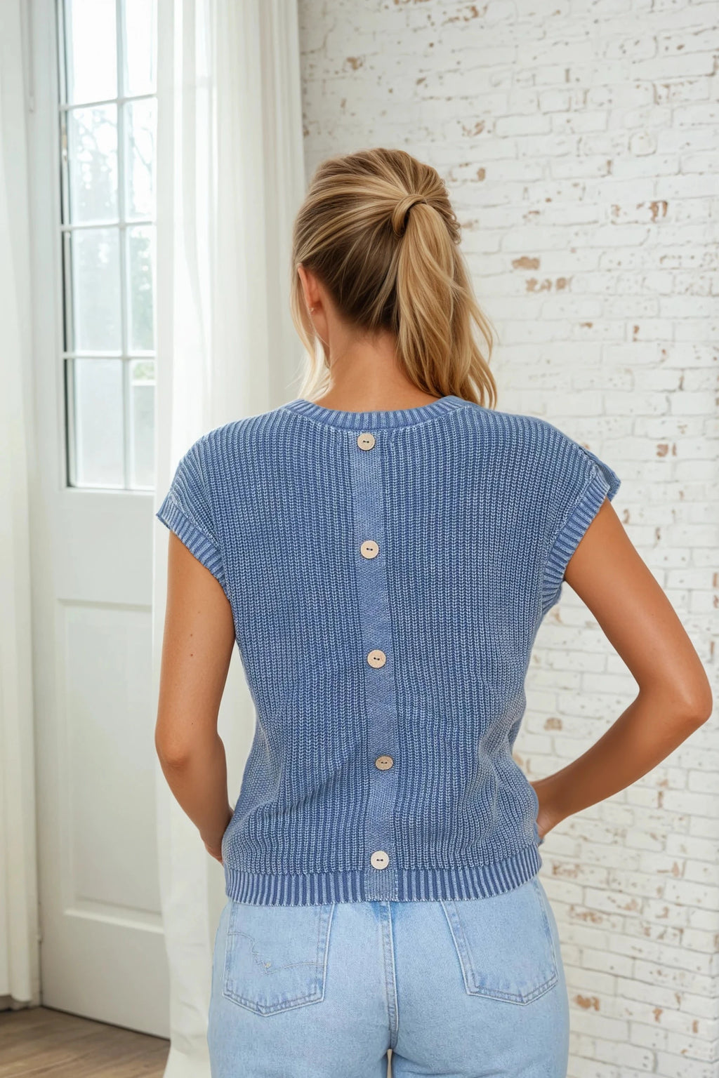 Effortless style meets cozy comfort in this washed faux back button top. The soft knit pattern drapes beautifully while the charming button detail adds a touch of vintage-inspired flair.