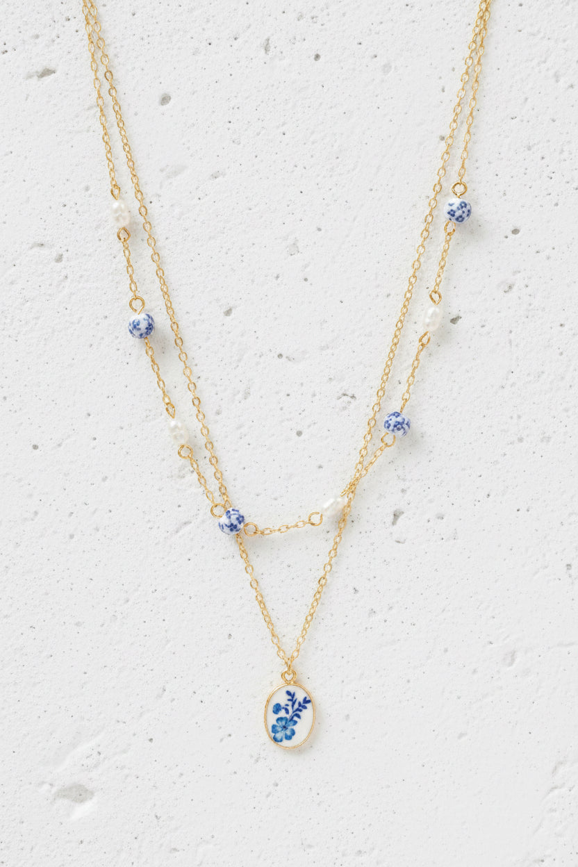 Two strands of pure delight: vibrant enamel florals meet creamy pearls in this versatile layered necklace. The colorful pendant brings artistic flair and personality, while the pearl strand adds timeless sophistication.