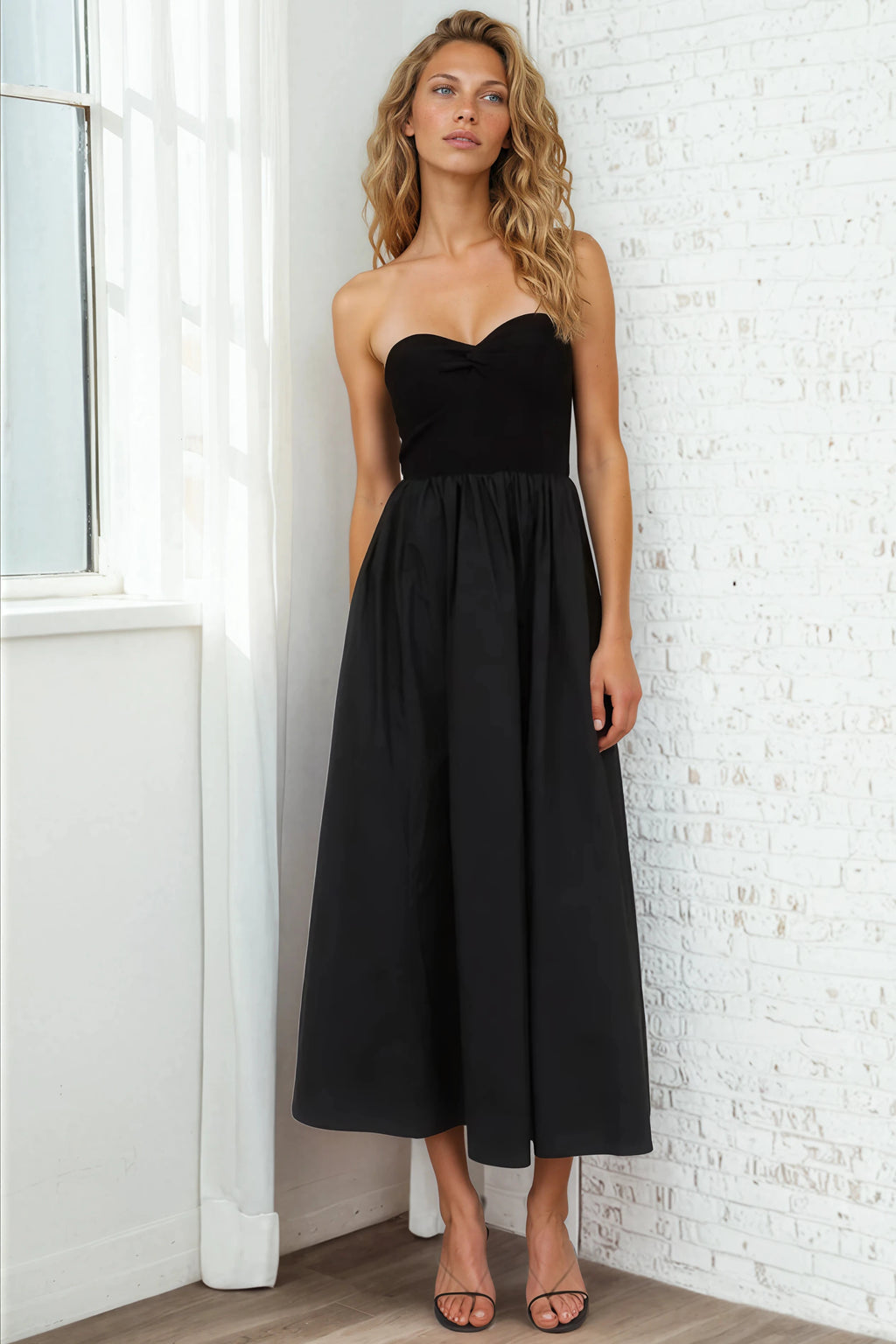 Strapless Twist Front Mixed Media Dress - Black