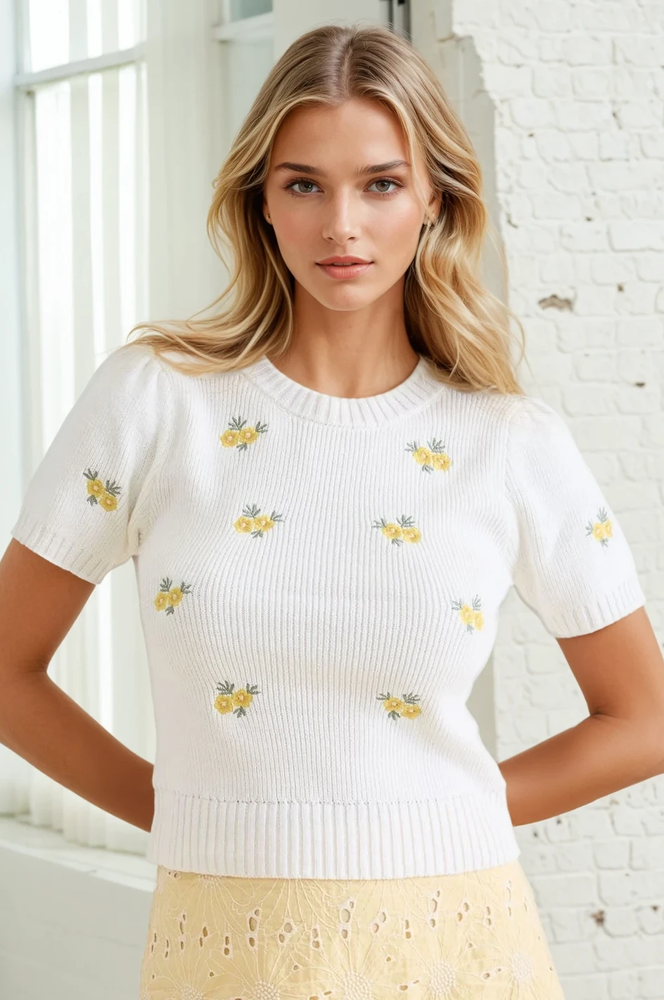 Delicate floral embroidery blooms across this cozy sweater, bringing a touch of garden-inspired charm to your everyday wardrobe.