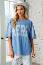 Show your America love with this adorable tee in light color...loose fit, fun vibes.
