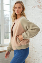 Make a statement with this adorable comfy and fuzzy fleece jacket, complete with color block detailing.