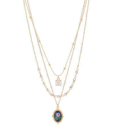 The Layered Rose Print & Pearl Charm Necklace is your ticket to effortless charm and botanical romance. Featuring a delicate rose print paired with a lustrous pearl charm, it's designed to shine on its own or mix and match with your favorite pieces. A little flirty, a little feminine, entirely you.