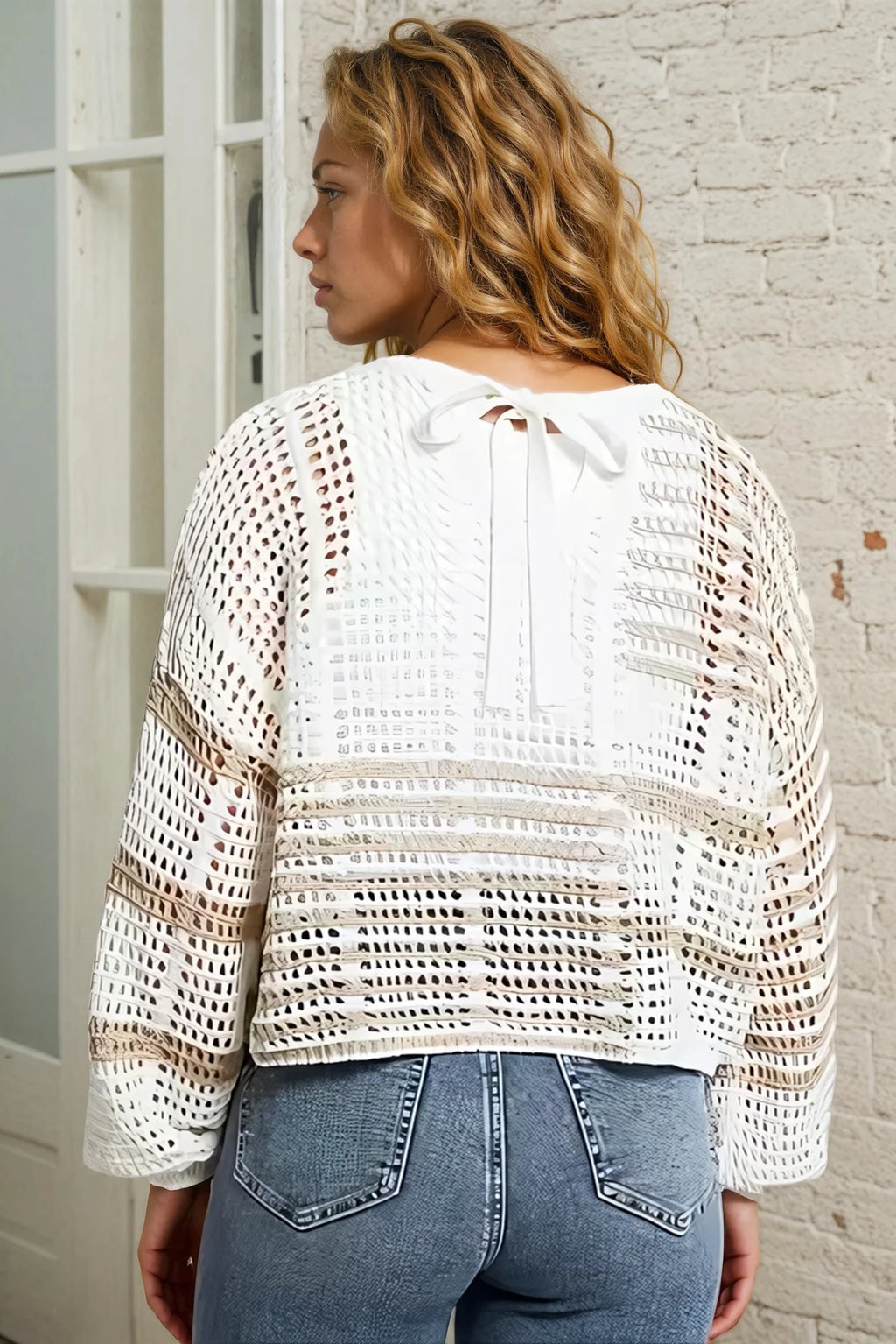 Layer up with personality in this striped crochet sweater that balances cozy vibes with contemporary style. The soft taupe palette works with everything in your closet, while the cropped silhouette and relaxed fit flatter any frame.