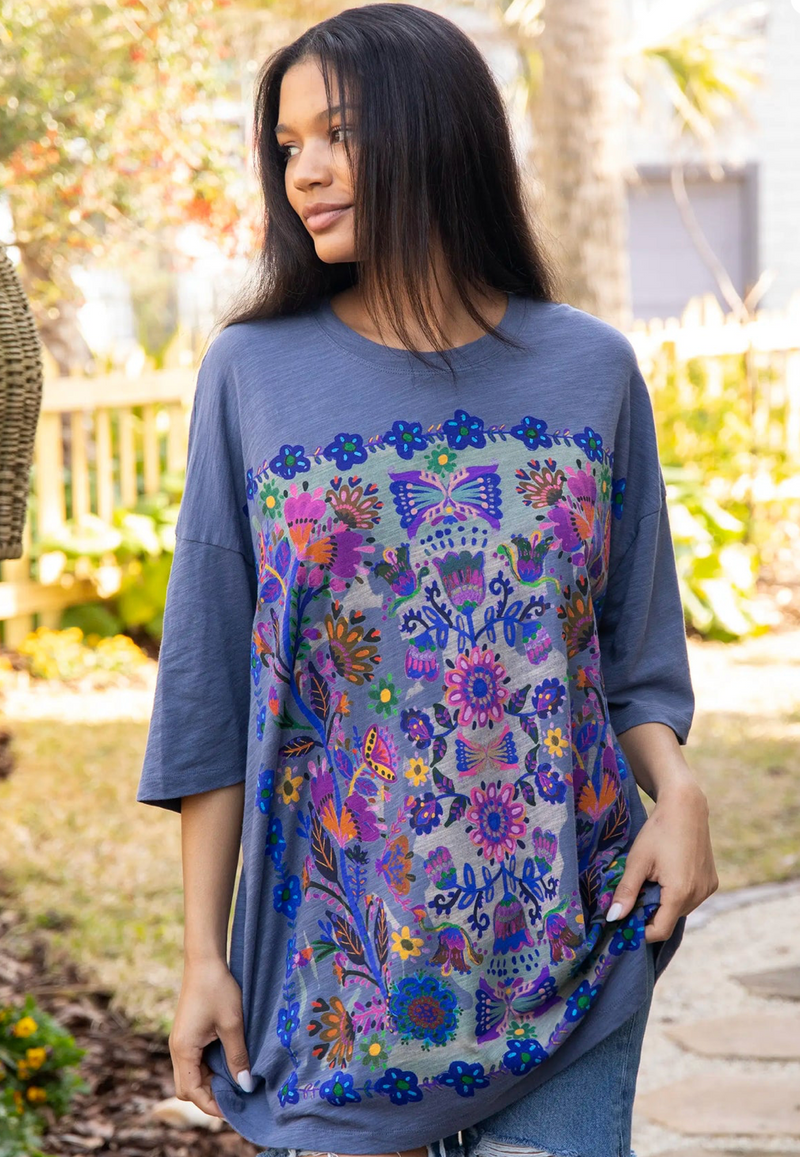 This tee screams summer. Lovely flowers on a comfy, loose fit t-shirt. Sure to be everyone's favorite...pick one up for a friend or for yourself! Easy style makes it great for gifting.