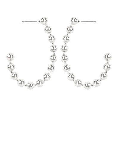 Minimalist and modern, these silver-toned hoops feature a smooth arc of polished beads for a clean, sculptural look. Their sleek silhouette adds subtle shine and texture, making them an easy choice for everyday wear or understated elegance. Lightweight and versatile, they’re a timeless staple with a contemporary twist.