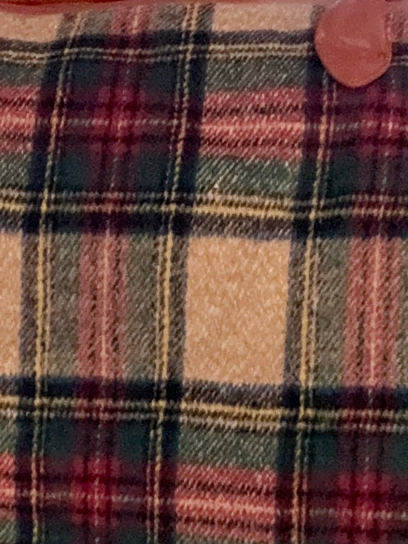 - Plaid flannel fabric with faux leather accents